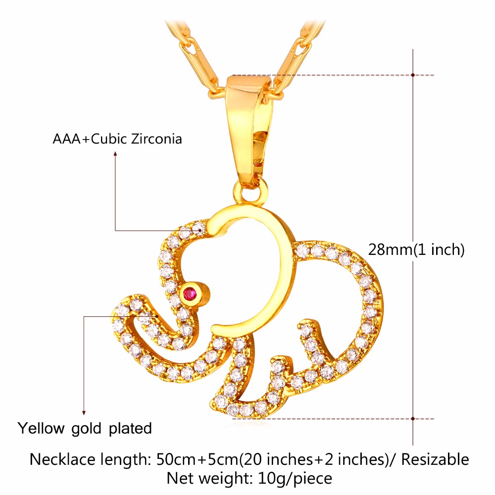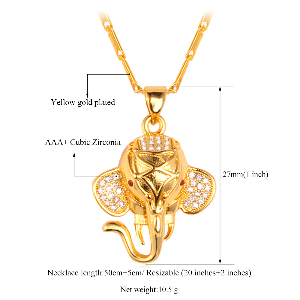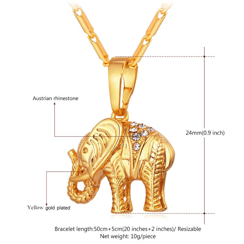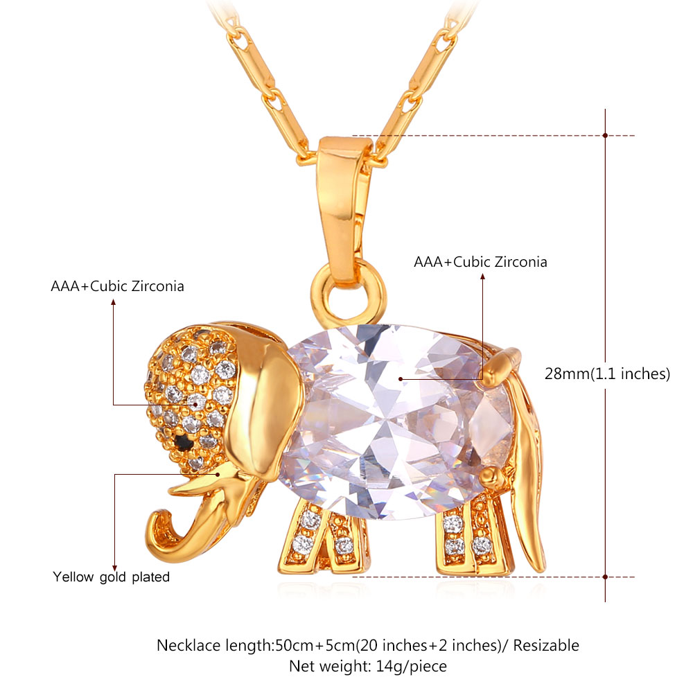 ChainsPro Elephant Necklaces 14K Gold Color Stainless Steel CZ Paved Africa Animal Unisex Jewelry QC24