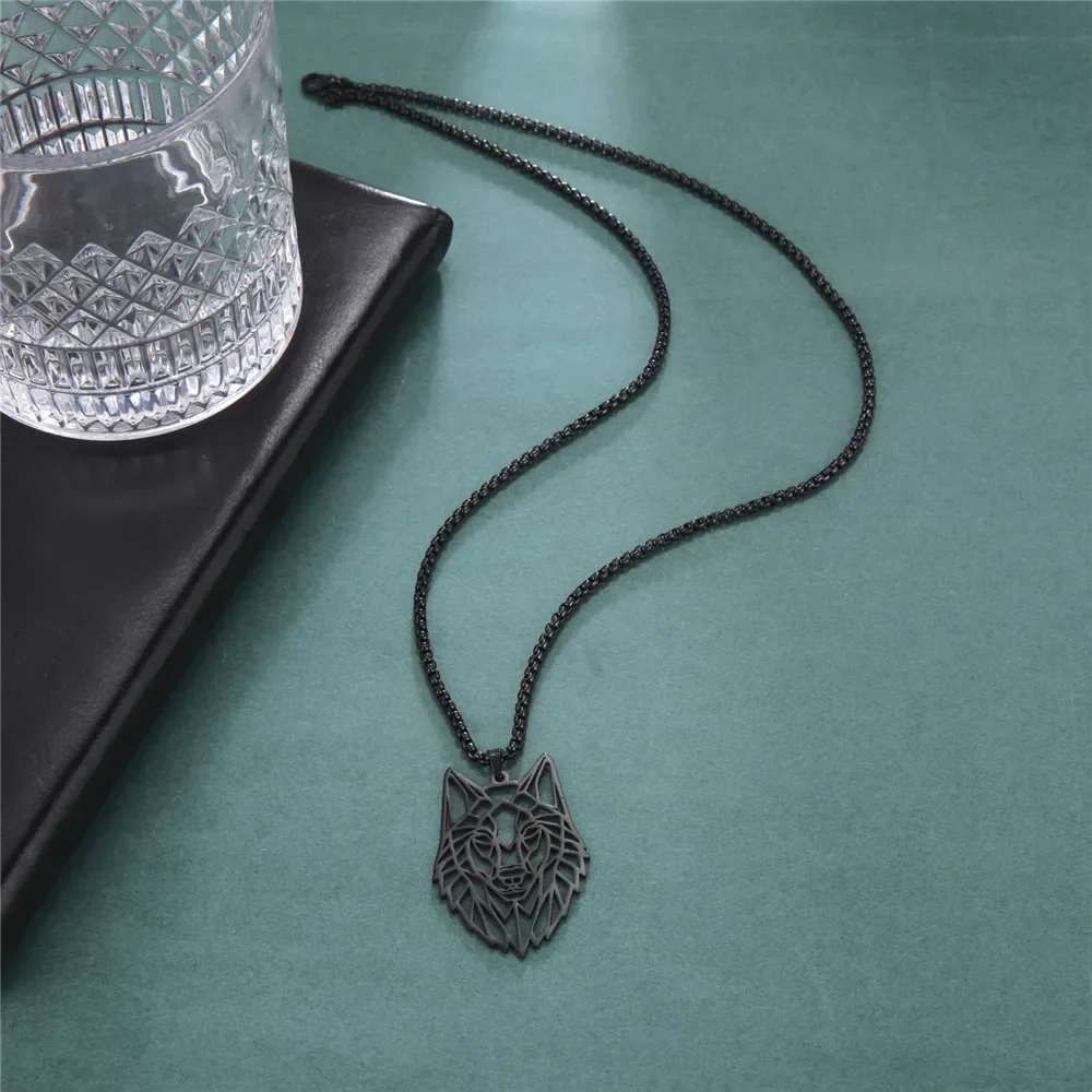 Skyrim Hollow Double Hole Wolf Head Pendant Stainless Steel Necklace Men's And Women's Fashion Party Talisman Jewelry Gift