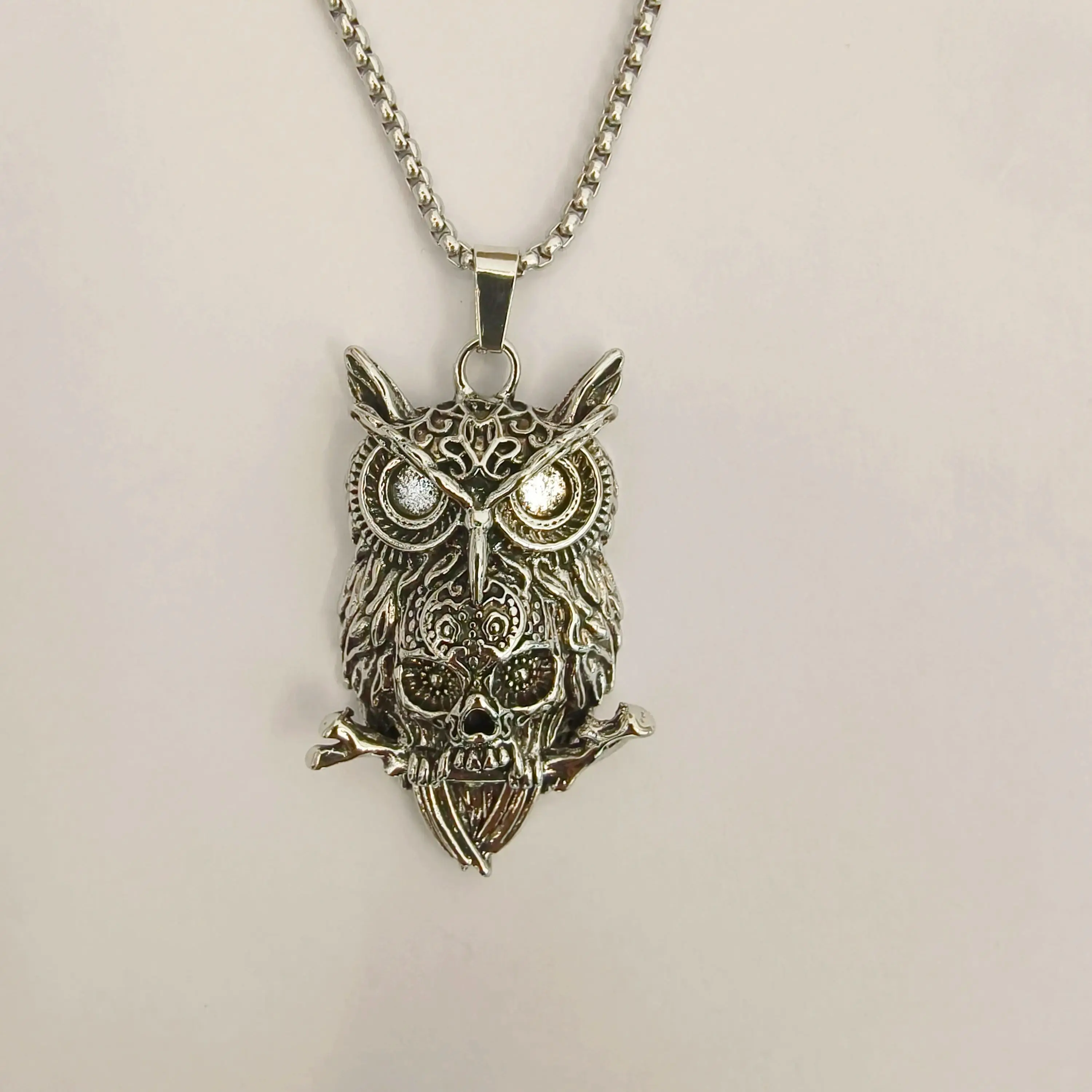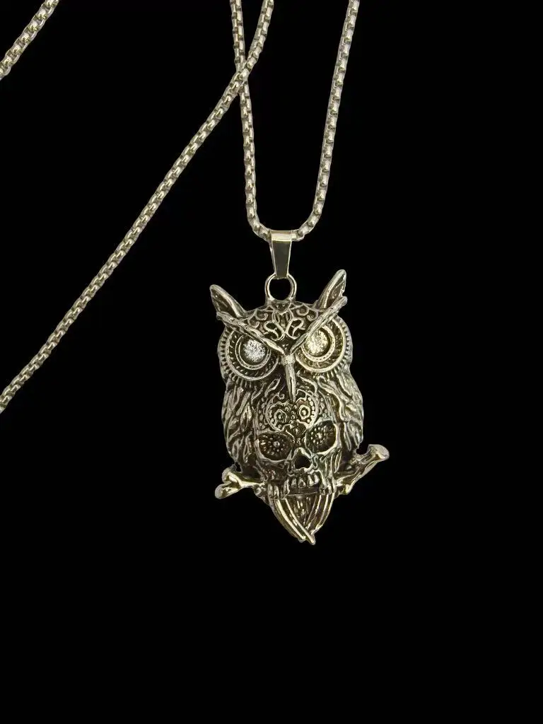 European and American men and women retro personality owl pendant punk street simple fashion trendsetter titanium steel necklace