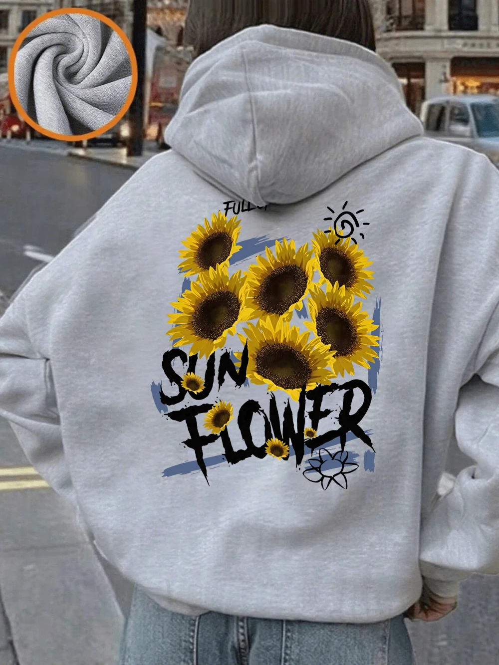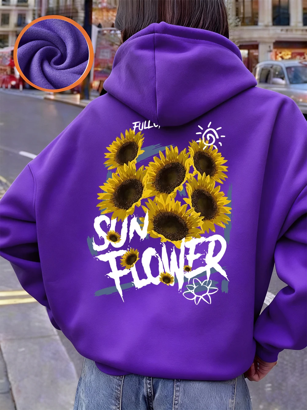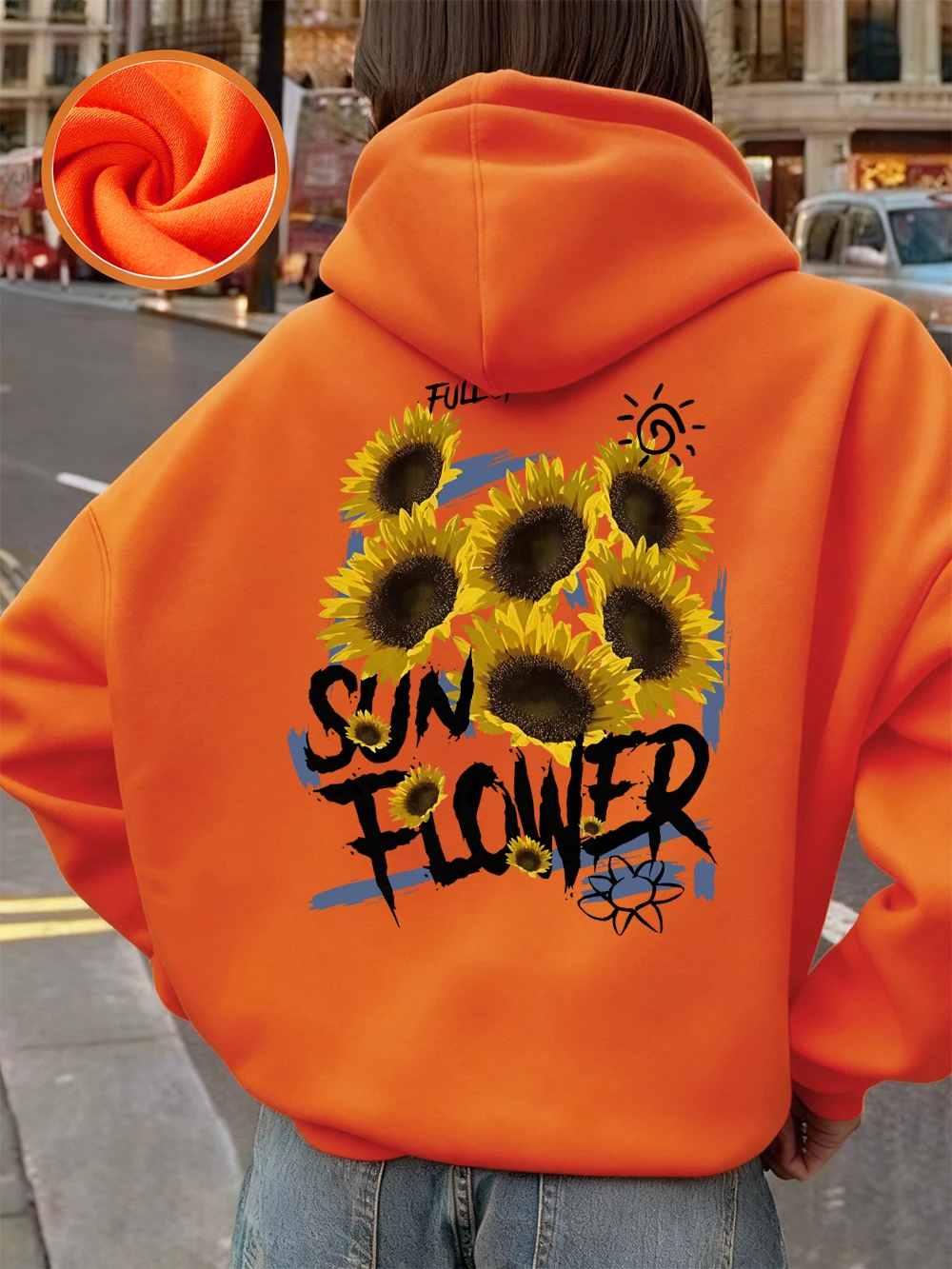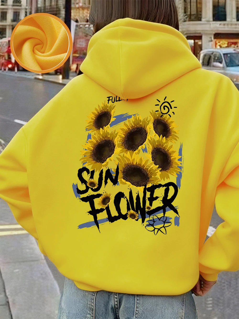 Full Of Sunflower Printing Hoodies Womens Winter Fleece Warm Pullovers Basics Pocket Sweatshirts Casual Loose Womans Clothes