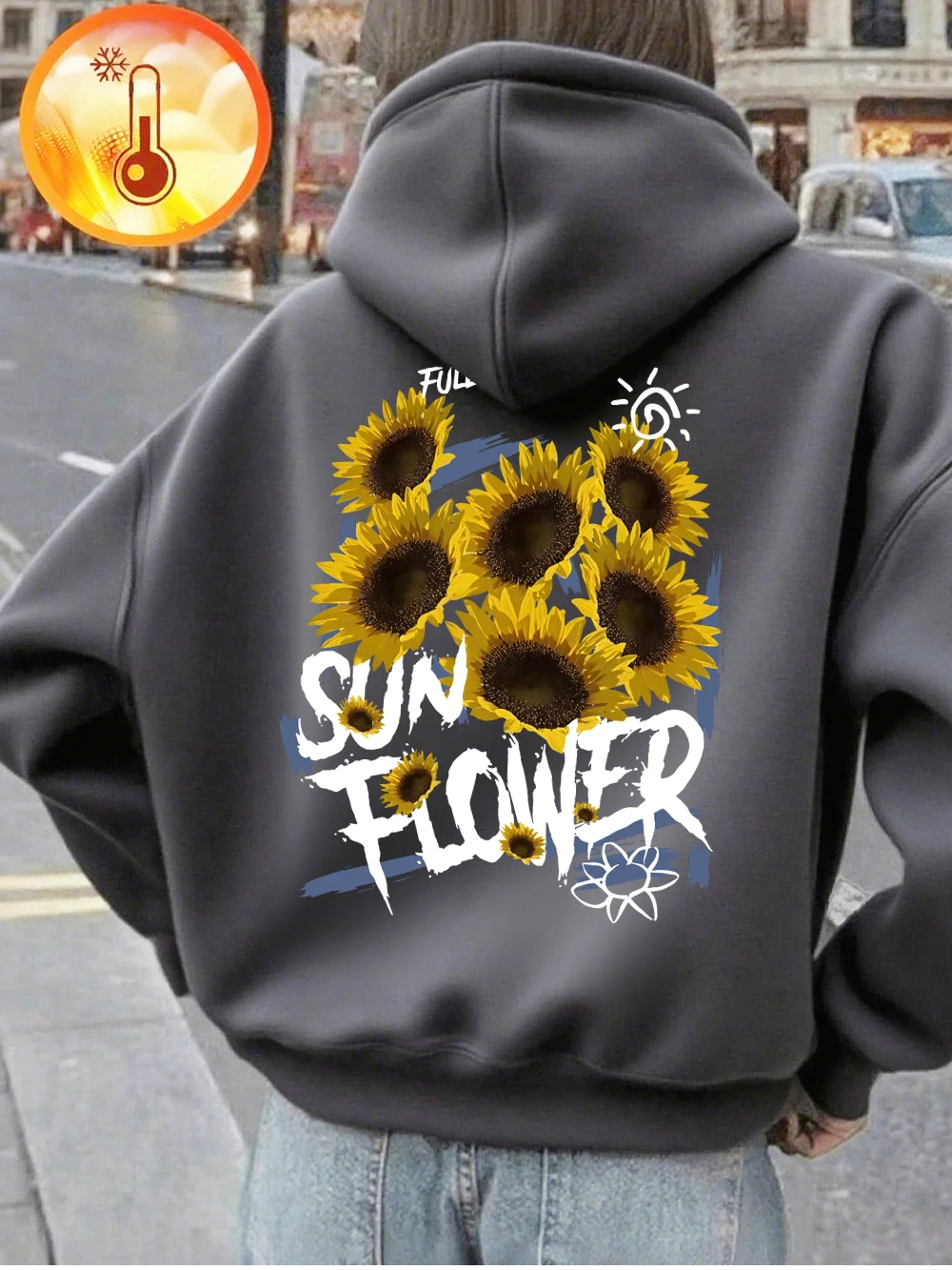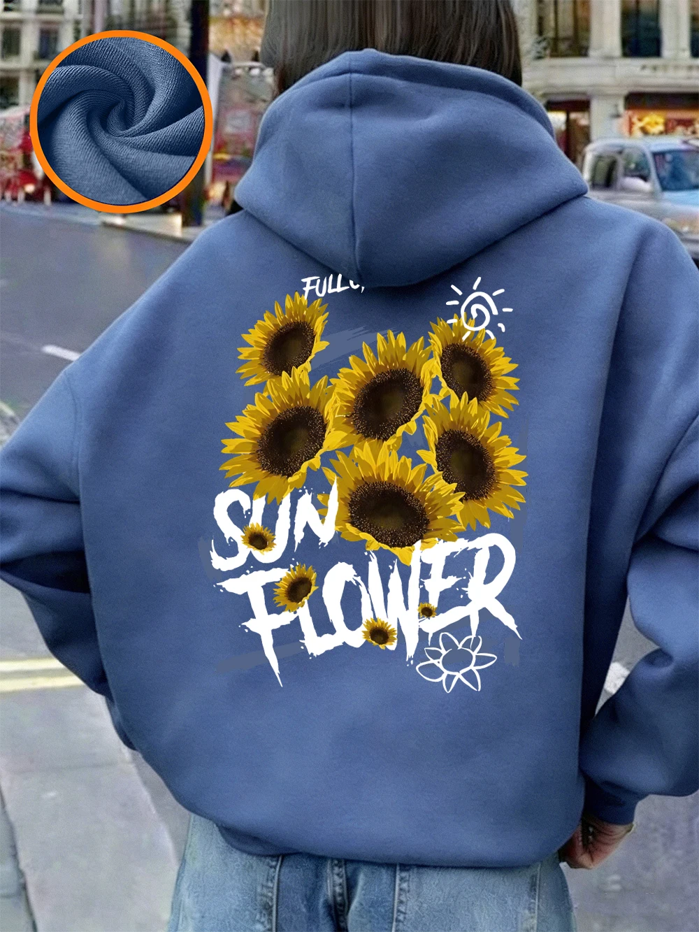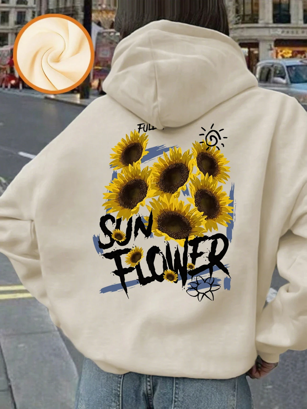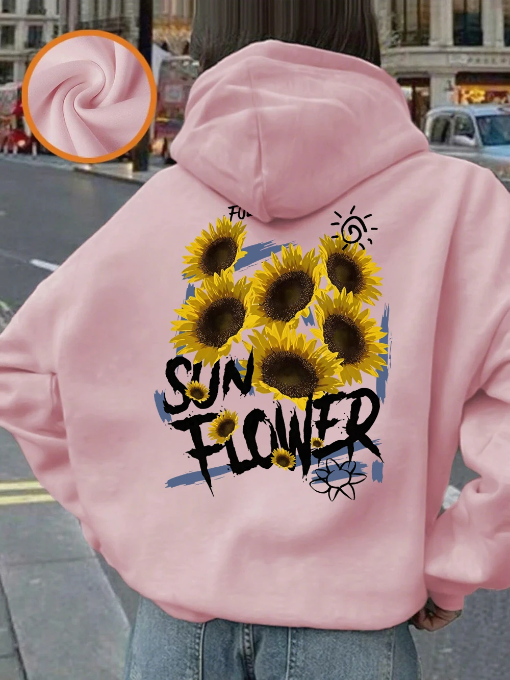 Full Of Sunflower Printing Hoodies Womens Winter Fleece Warm Pullovers Basics Pocket Sweatshirts Casual Loose Womans Clothes