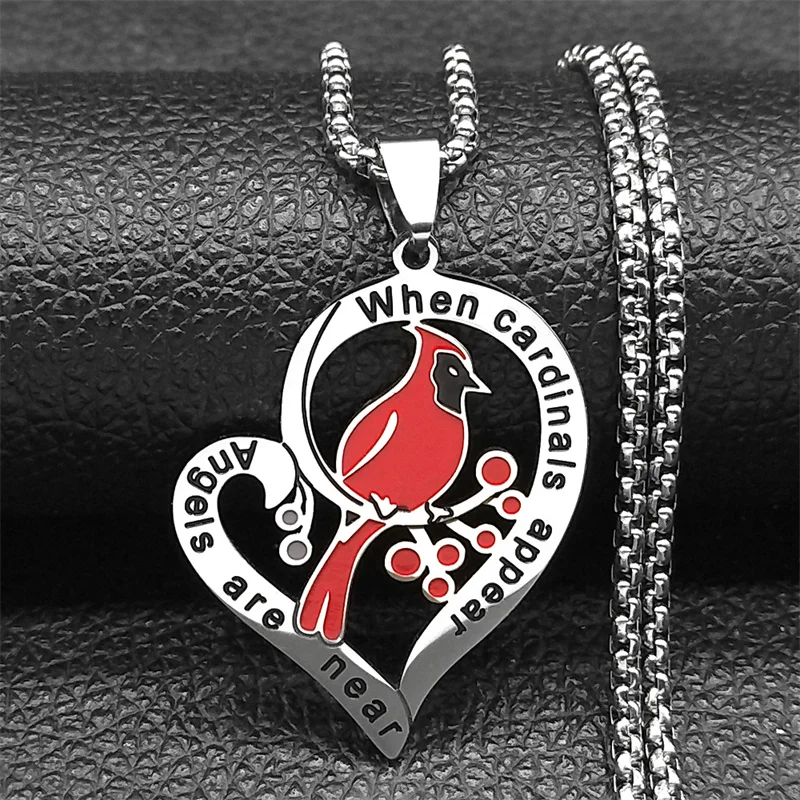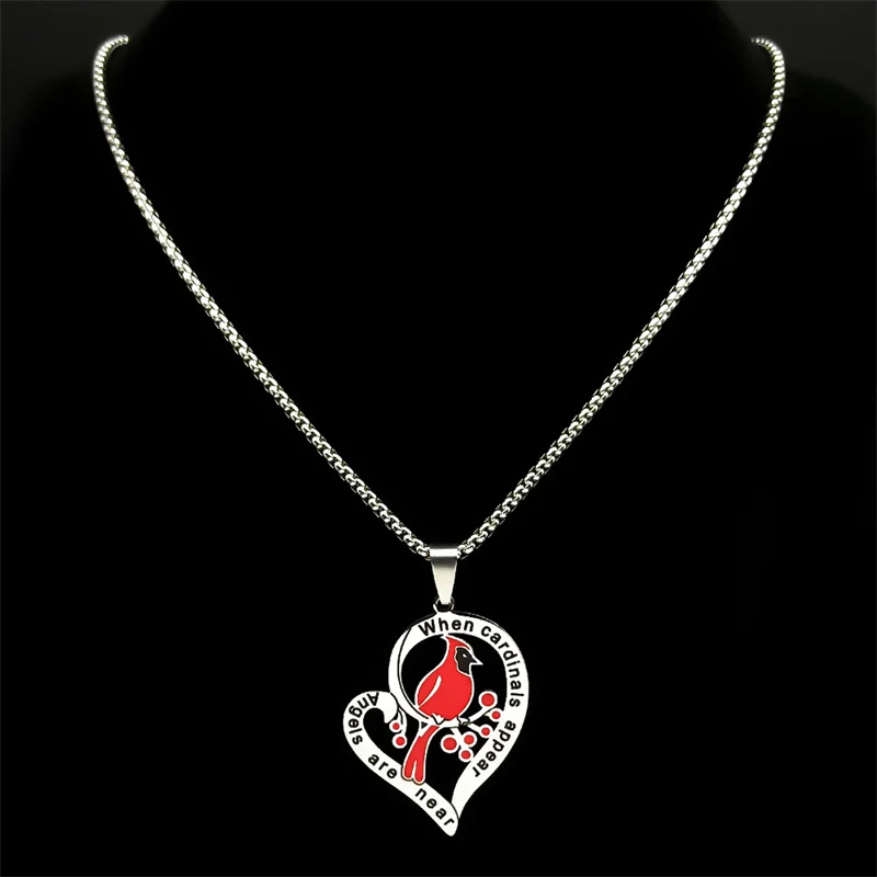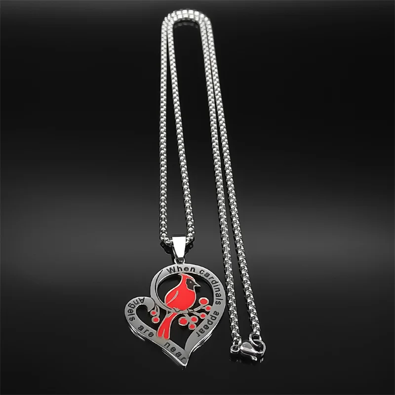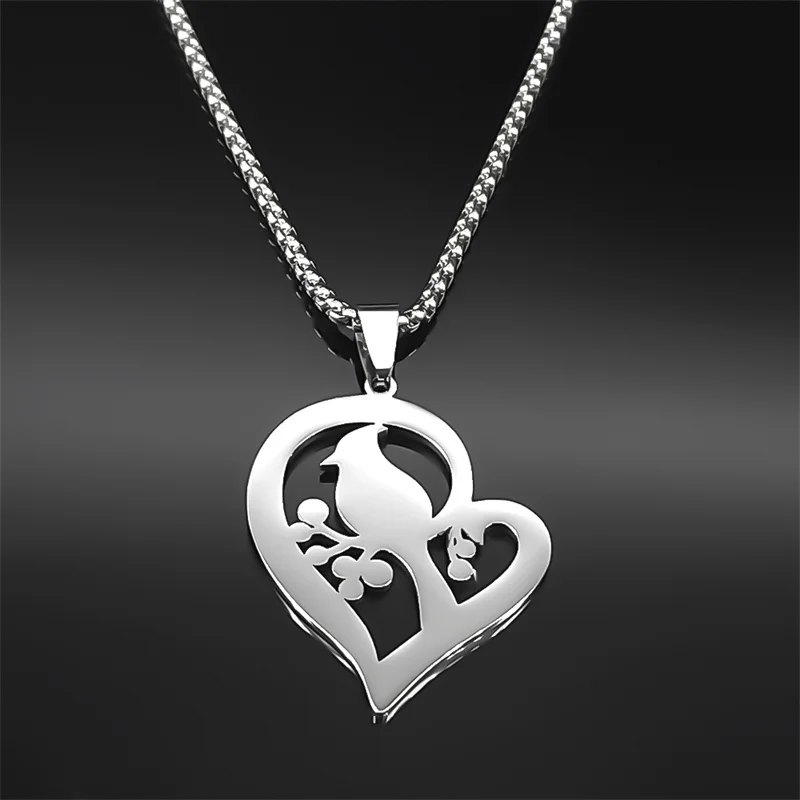 Heart Love Cardinals Pendant Necklace For Women Men Stainless Steel Silver Color Love Family Amulet Chain Jewelry Gifts